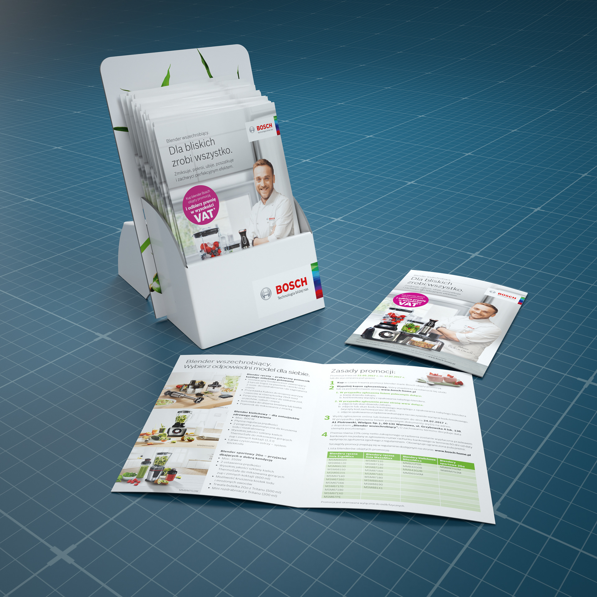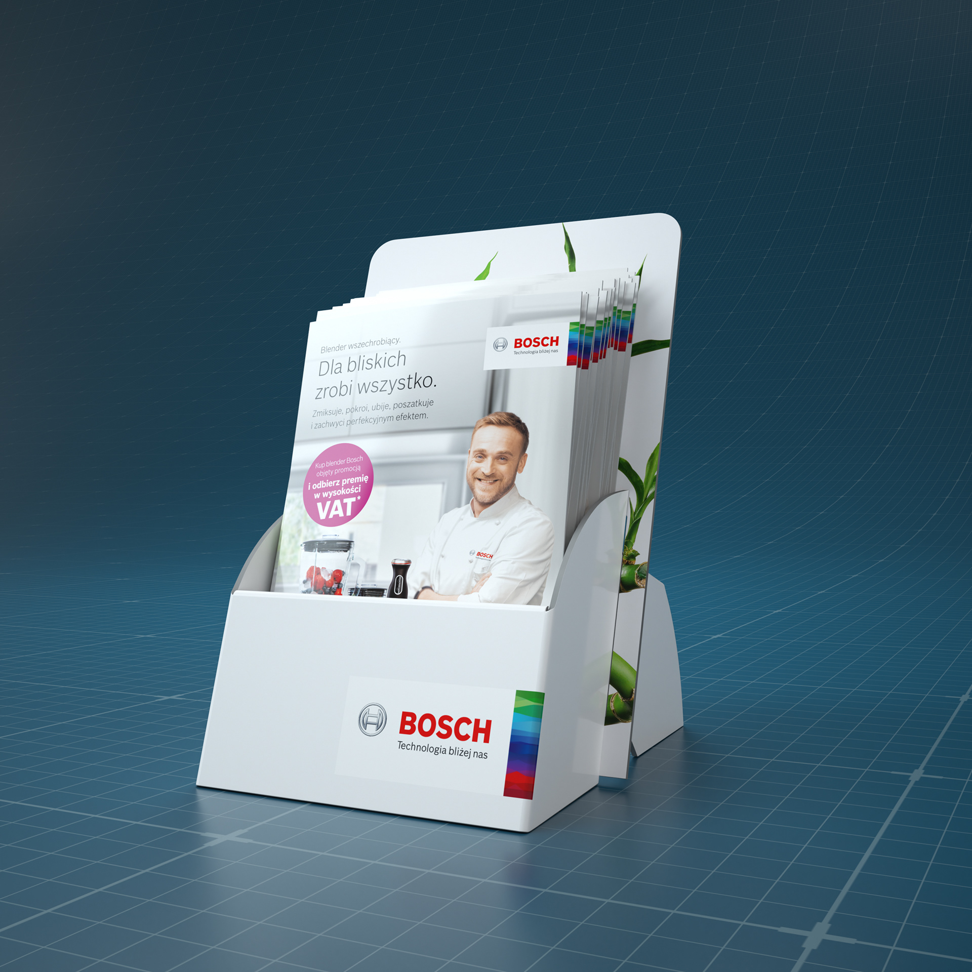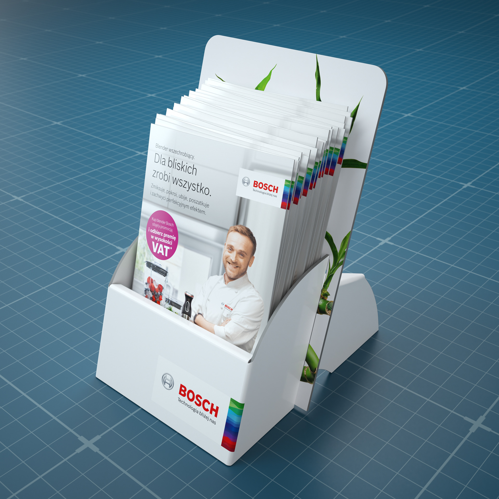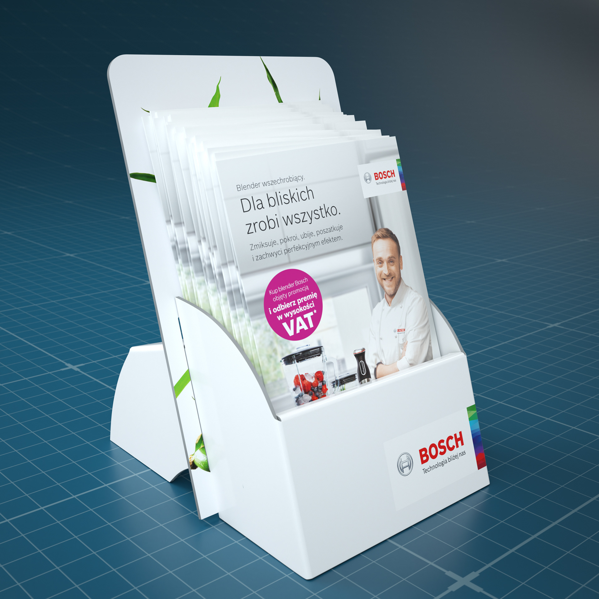 This is POS and leaflet design and visualisation for Bosch. Leaflet was designed in Indesign and Photoshop. 3D modeling in Modo, rendering in C4D + Octane Render.